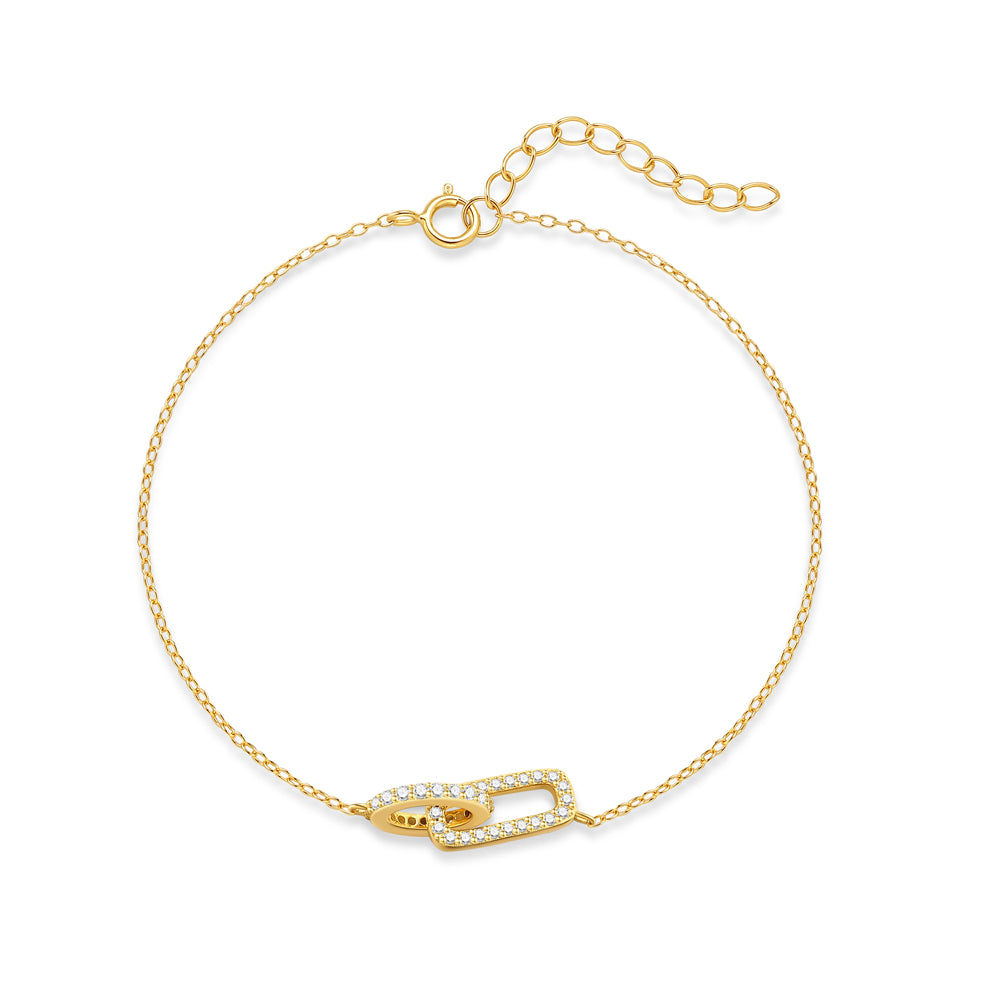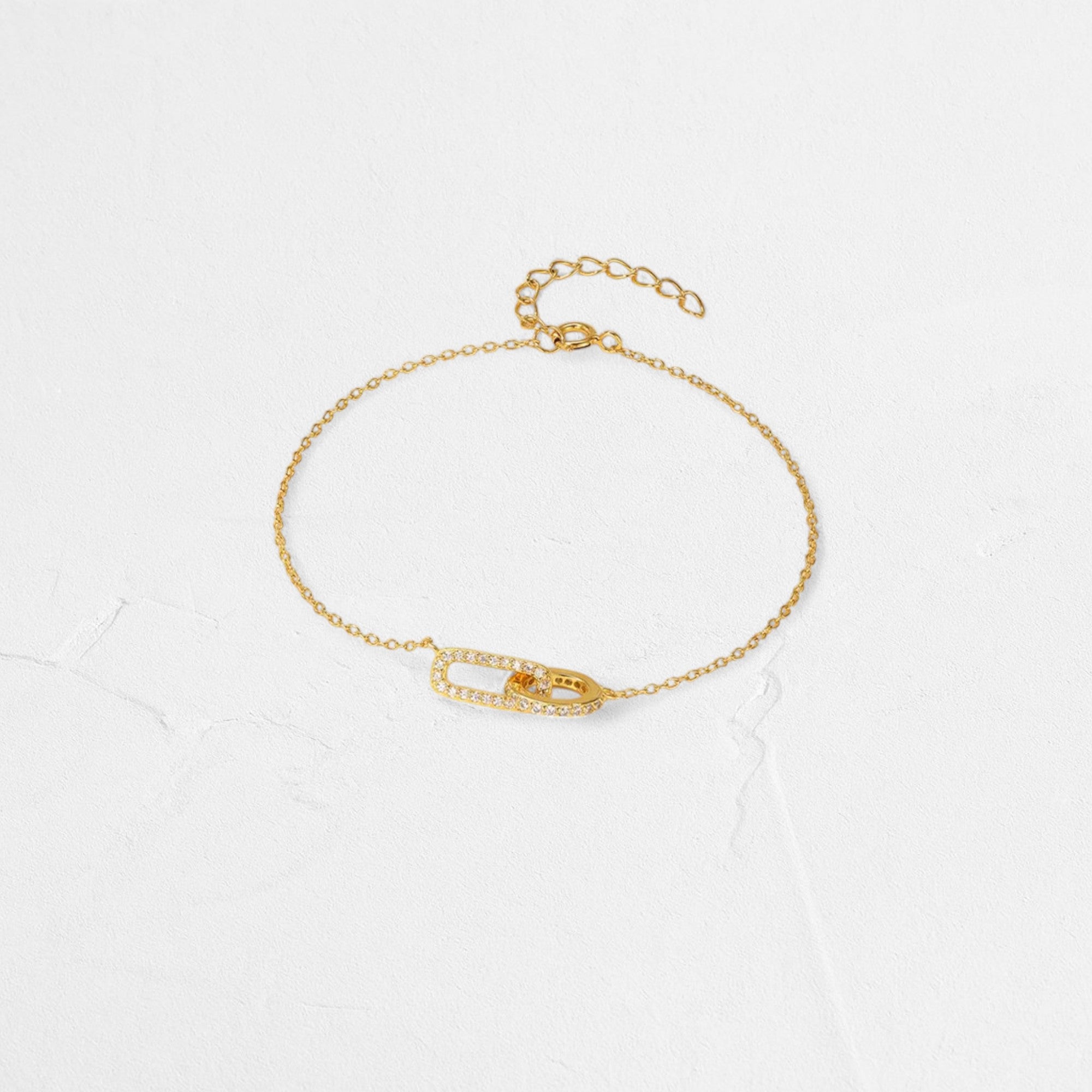 Een fijne armband met twee in elkaar verstrengelde rondjes – een symbool van verbondenheid. Eén van de rondjes is versierd met kleine steentjes voor een subtiele sparkle. Mooi om zelf te dragen of samen met een dierbare te kopen!