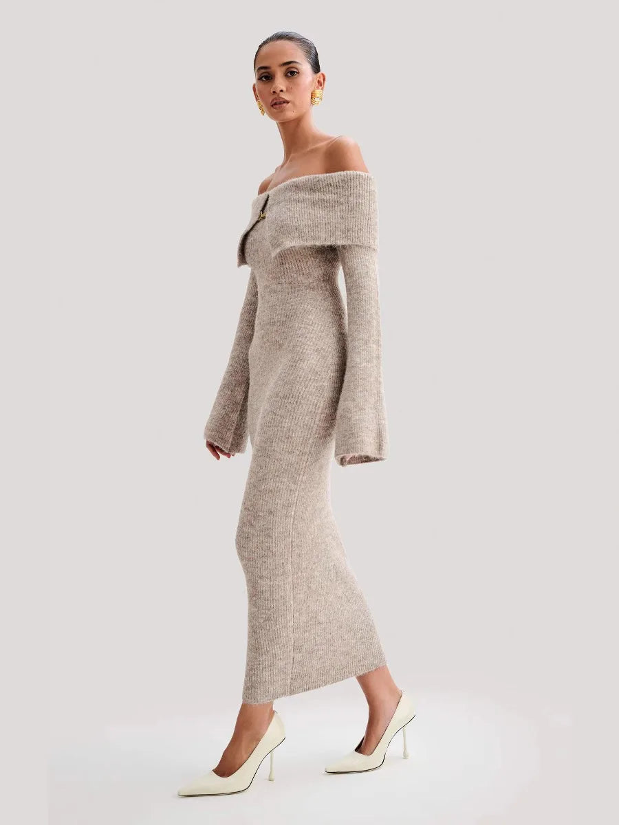 Elegante Gebreide Maxi-Jurk – Off-Shoulder & Luxe Comfort