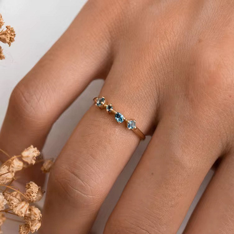 Een unieke mix van vintage charme en verfijning. De speelse combinatie van verschillende steenformaties geeft deze ring een tijdloze, koninklijke uitstraling. Perfect voor liefhebbers van klassieke elegantie met een moderne twist.